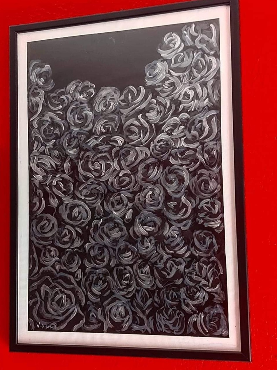 “Silver roses” πίνακας με κορνίζα και γυαλί 37/52cm